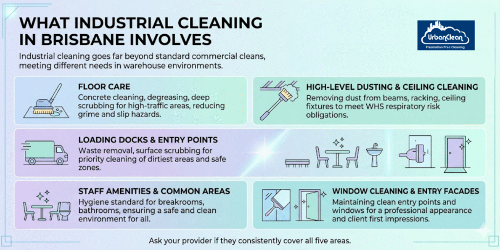 Here’s what a proper commercial cleaning service for a Brisbane warehouse should cover: