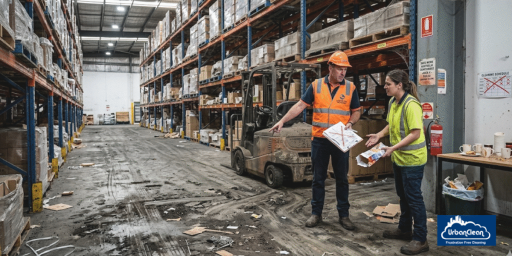 Think about what happens when your cleaning schedule slips. Grime builds up on floors, then dust settles on racking, and staff amenities go unchecked. None of it feels urgent in the moment, but it compounds fast (one missed clean is an inconvenience, three in a row is a compliance problem).